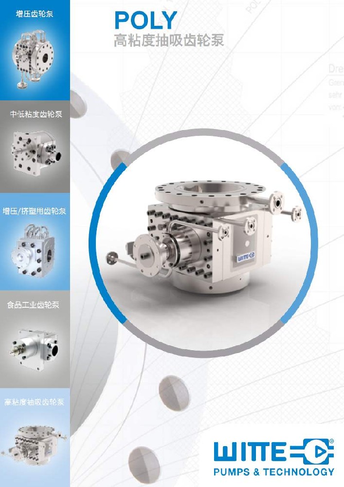 德国威特齿轮泵 WITTE PUMPS & TECHNOLOGY GmbH具有 CHEM /EXTRU/POLY/CHEM-MAGNET 等系列高精密亚美电竞(中国),采用模块化针对性设计,根据泵的操作条件, CHEM /EXTRU/POLY 泵的零件具有可互换性。威特泵用户可根据实际需要,采取液相加热或电加热方式,密封可选择机械密封 , 填料密封, , 螺旋迷宫密封 ( 动密封 ) ,真空螺旋密封及特殊组合的密封配置。威特泵具有直齿、斜齿,以及威特**设计的高精度、低脉动、低温升、低剪切的人字形齿,针对不同的输送介质,在泵的材质选择上,威特可提供钛合金、铬镍合金、哈氏合金、钽合金,陶瓷,金属陶瓷的组合材质等。德国威特泵业技术有限代表高黏度流体和熔体齿轮泵****技术。WITTE泵设计——“高精度人字型齿”,斜齿轮大幅度降低了平行外啮合齿轮在高压下的脉动。而对于挤压、聚合、合成、化工等工艺中,要求泵的出口压力波动非常小时,如在高质量的管材、**次的薄膜、片材挤塑机上,使用“高精度人字型齿”能够更**的**压力和流量的波动。与塑料及聚合物工艺的传统设计相比,在同等排量下,“高精度人字型齿”允许使用加粗的轴颈。此结构可以降低进出压力对轴承的负载,同时压差范围更大,可以达到350Bar,泵进出口两端在高压下工作时,轴承温升很低。人字型齿轮的另一特点是对介质的剪切力较小。